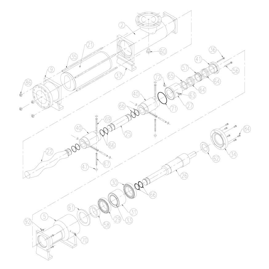 Los ejes y rotores son de SAE 4140. Cuando la aplicación lo requiere, se construyen en SAE 8620 y son sometidos a tratamiento térmico para otorgarles una dureza superficial de hasta 60 RHC. Esto le otorga una larga vida útil, aun bombeando fluidos muy abrasivos. Todos los ejes de mando y rotores tienen una capa de cromo duro de 0.2mm, lo que incrementa la resistencia al desgaste.